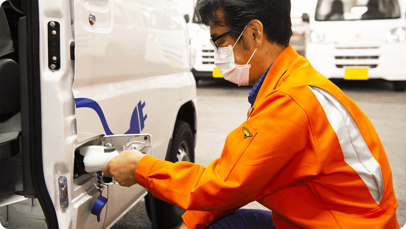 環境への負荷を減らすためにEVの導入を検討しているものの、航続距離などが不安でなかなか一歩が踏み出せないでいる企業もあるかと思います。でも、23区内であれば何の問題もありません。むしろガソリンスタンドで給油する人件費とガソリン代を削減できるというプラス要素もあり、管理業務もラクになっています。
