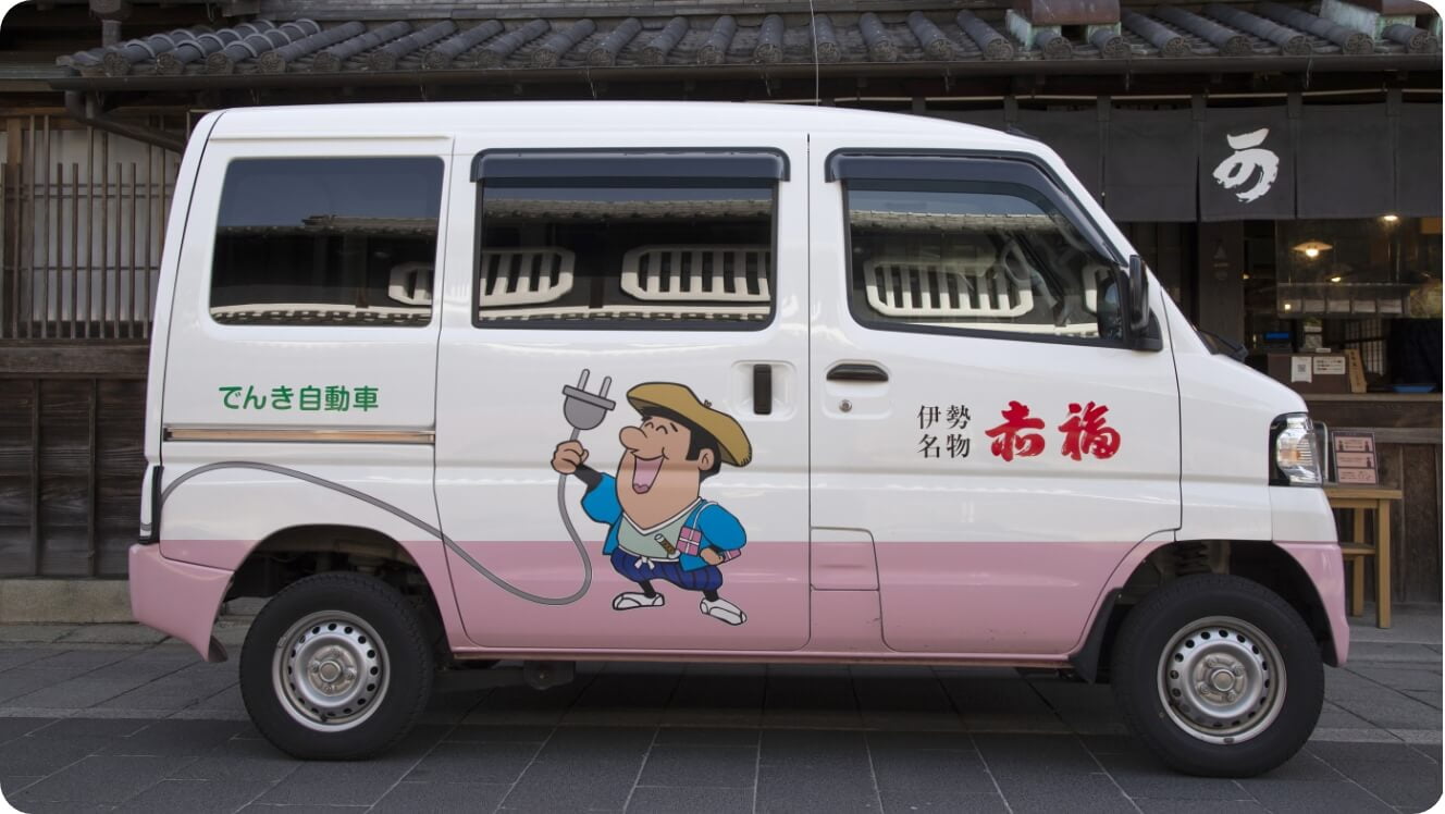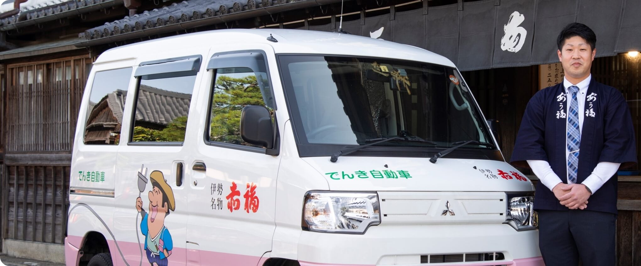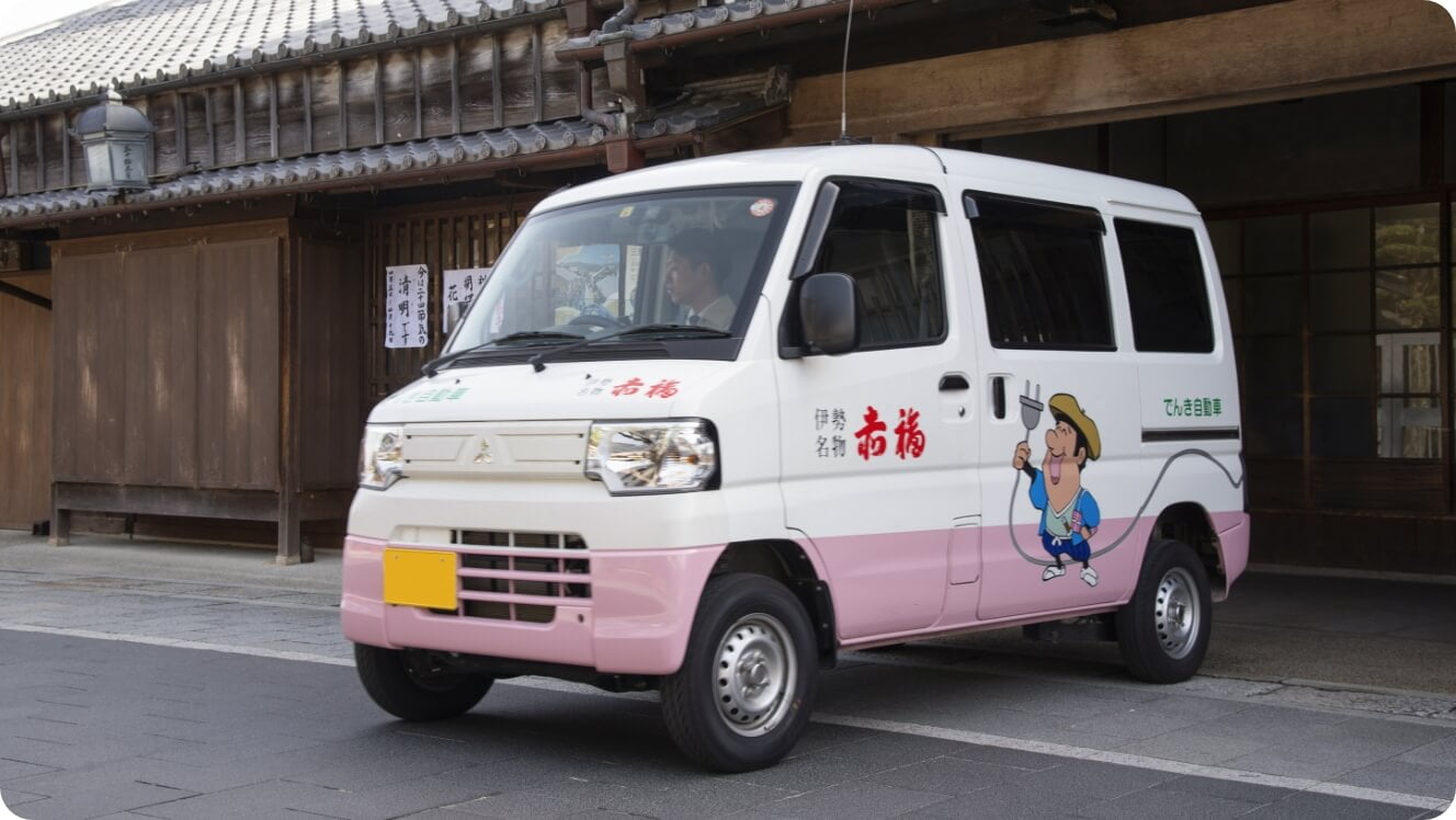 またSDGsが社会的にも浸透してきている中で、観光のお客さまで賑わう伊勢の企業としてもっと環境問題に取り組まなければという思いもありました。そこで3、4年ほど前から排気ガスを削減していこうとエコカーの導入を検討し始め、2年前に『ミニキャブ・ミーブ』を導入しました。