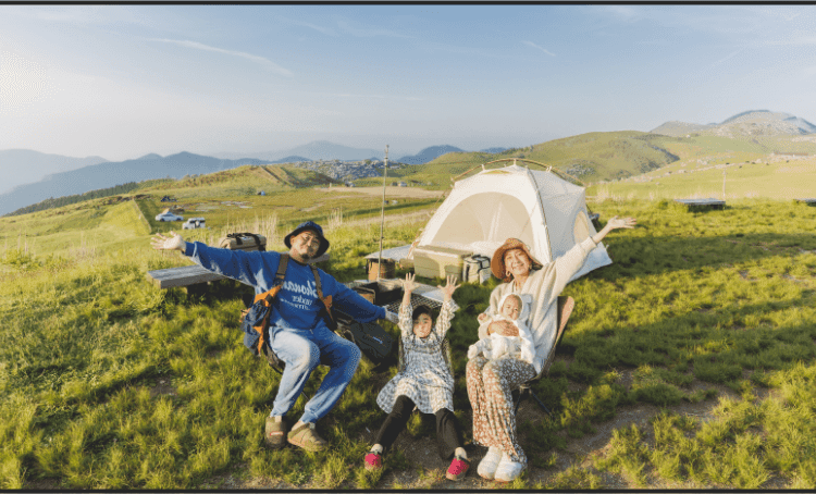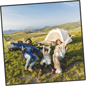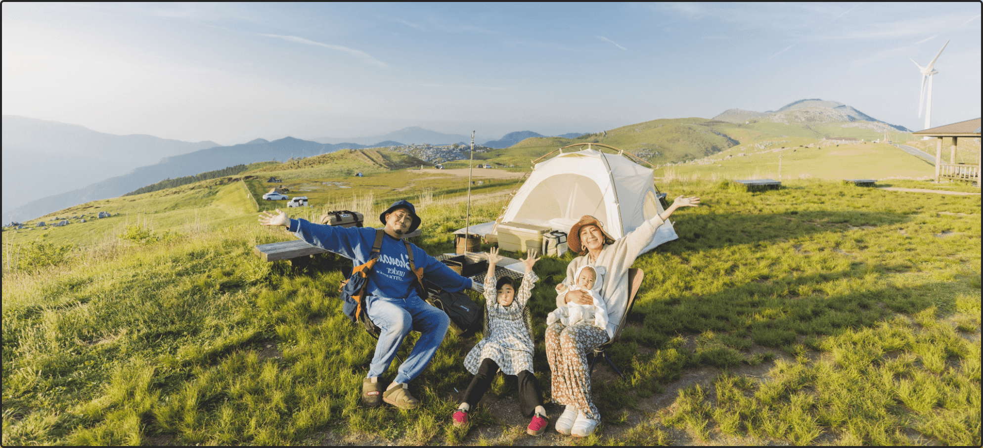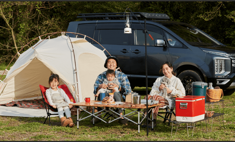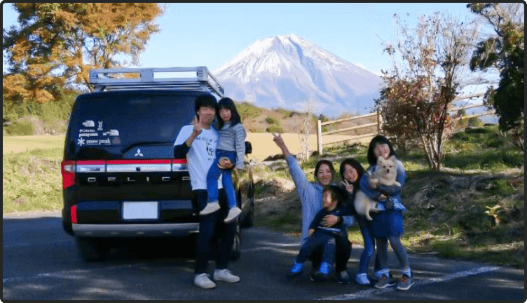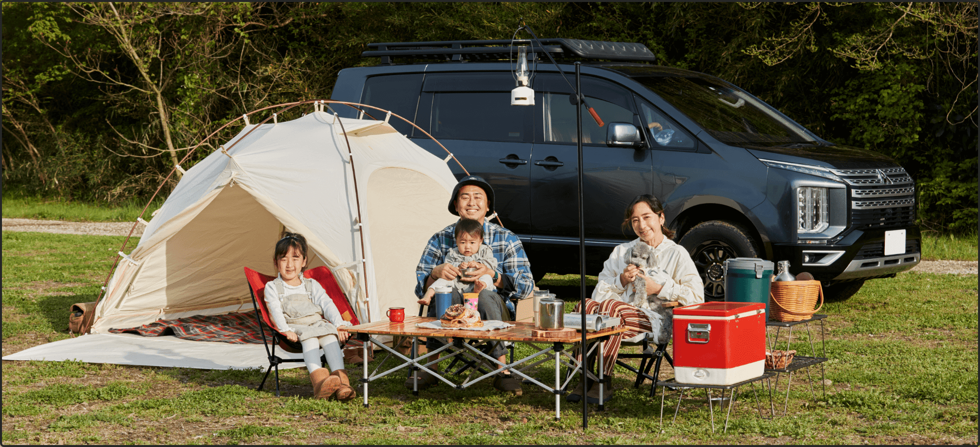 家族写真をたくさん撮るきっかけとなった、静岡県のキャンプ場での家族とデリカD:5との写真撮影