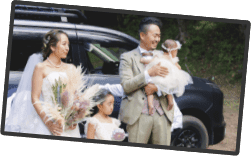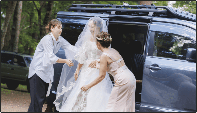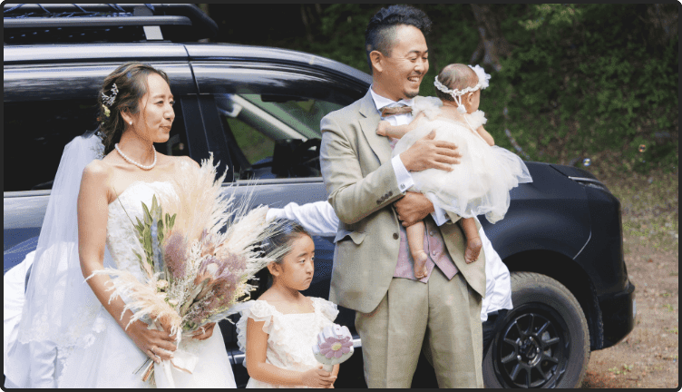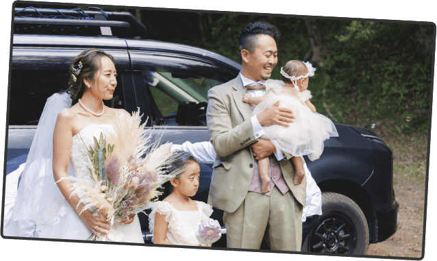 結婚式で、家族の一員であるデリカD:5に乗り、会場への入場を行ったこと