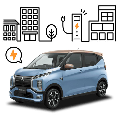 eKクロス EVなら駆動用バッテリーに電力を蓄電することができるので、卒FITされた方も、発電した電気の効率的な活用が可能です。