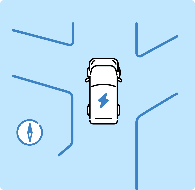 青円で示しているのはおおよその距離であり、厳密に示したものではございません。一充電走行距離*2(WLTCモード) (国土交通省審査値)一充電走行距離は定められた試験条件での値です。お客さまの使用環境(気象、渋滞等)や運転方法(急発進、エアコン使用等)、整備状況(タイヤの空気圧等)に応じて値は異なります。