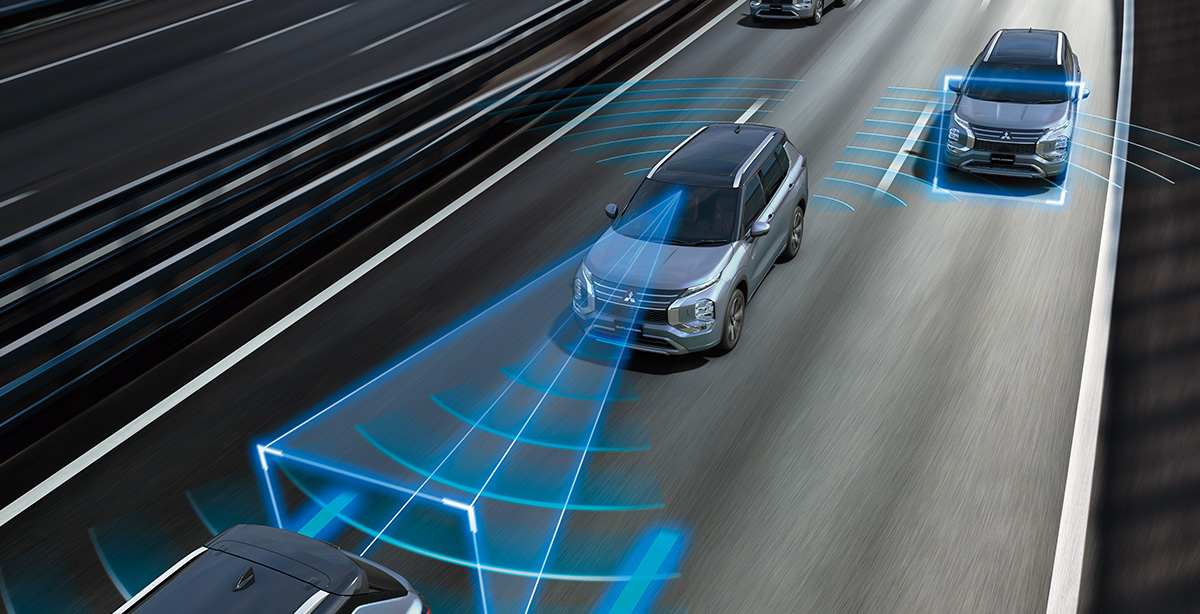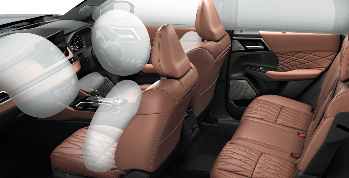 衝突エネルギーを吸収する高エネルギー吸収構造と高耐力キャビン構造を組み合わせた、三菱自動車独自の衝突安全強化ボディを採用。全方向の高い衝突安全性を確保します。