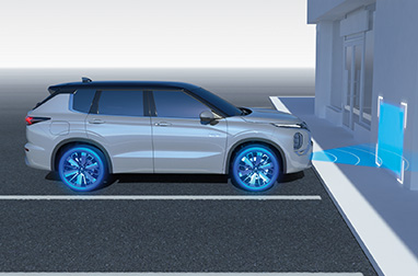 壁などの障害物に加え、車両や歩行者も検知。踏み間違いなどの操作ミスによってアクセルペダルを強く踏み込んだ場合、警報音とインフォメーション画面表示で注意を促します。さらにモーター出力を抑制しブレーキ制御を作動させて衝突回避…