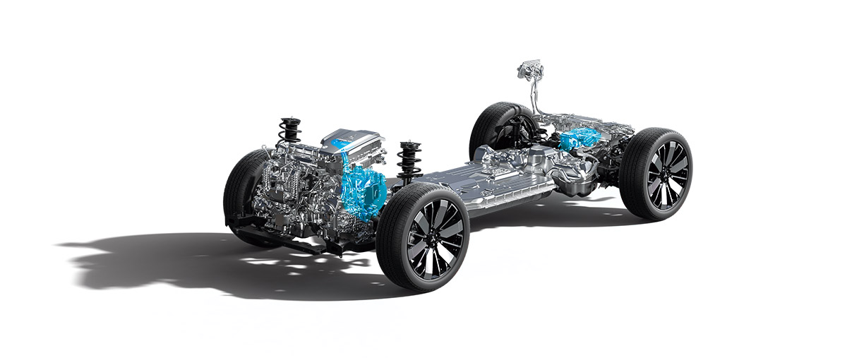 駆動用バッテリーのさらなる大容量化により、長いEV航続距離を実現。加えてロングドライブでは、走行状況などによってエンジンでの発電や駆動を組み合わせ、バッテリー残量を気にせず、安心して遠くまで出かけることができます。さらにバッテリーのシステム出力も向上。前後輪独立のツインモーターによる、滑らかで力強いEV走行に磨きをかけました。