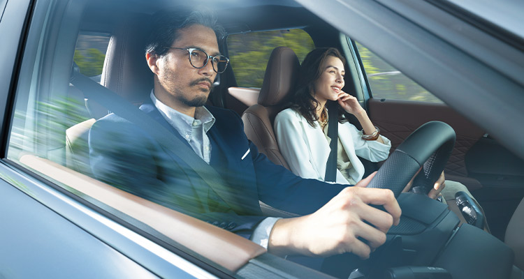駆動用バッテリーの大容量化に併せて、電池制御を刷新し、システム出力を向上。前後輪をそれぞれ小型・軽量な高出力モーターで駆動するため、優れたレスポンスと力強く爽快な加速感を実現。発進時から高速の追い越しまで全速度域にわたって、さらに力強くスムーズなEVらしい走りを堪能できます。