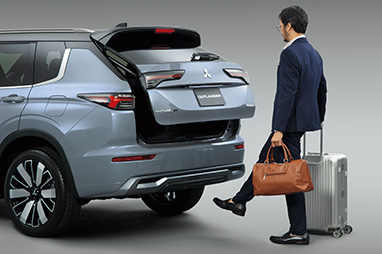 つま先をバンパー下に出し入れするだけで開閉可能。利便性を高めました。また、ゲートが開く高さを任意に設定できる停止位置メモリー機能も搭載しています。