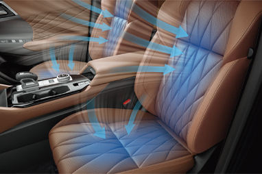 背もたれと座面から、シート表面の熱気を吸い出すことで通気を良くするベンチレーションを搭載。暑い季節などでも快適な運転をサポートします。