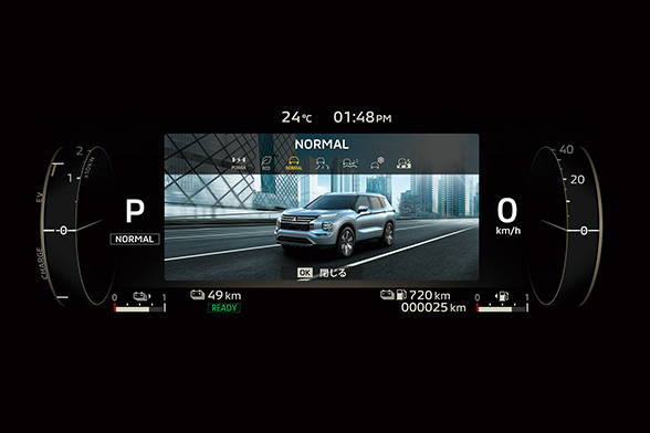 EV航続可能距離、電力消費量など、PHEVに関するさまざまな情報を表示