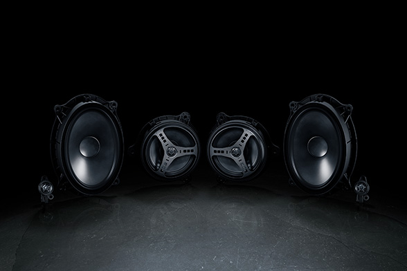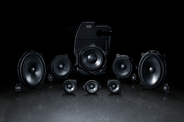 コンパクトな2wayシステム(8スピーカー)でありながら、力強い低音とクリアな高音を実現。リヤスピーカーはウーファーとツイーターを一体化して配置し、低音から高音までの幅広い音域表現を可能にしました。