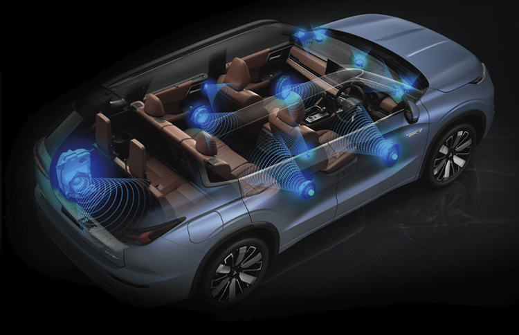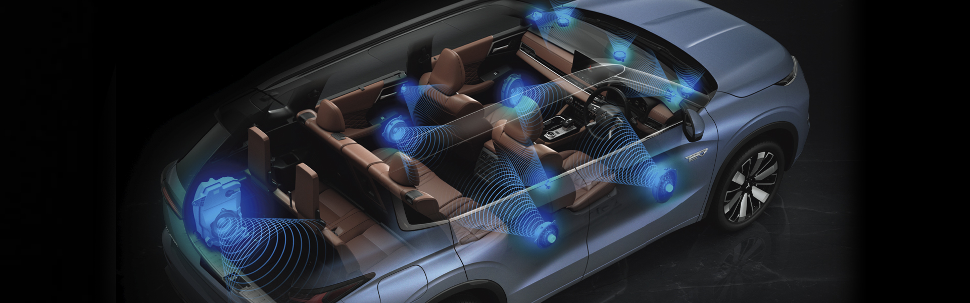 アウトランダーに相応しい究極のサウンドを実現するためには、究極の“筐体”でなければならない。三菱自動車が着目したのはフロントドアの構造だった。穴を塞ぐことで“スピーカーボックス”の役割を与え、スピーカー背面から回りこむノイズを遮断。さらに内部に“重り”を入れ、共振も低減*。金型からつくり直すゼロベースの発想が、アーティストの“想い”までも再現するような中高音から重低音までのリアルなサウンドの表現を可能にした。さらにオフロード走行や雨天時でも変わらない高音質を愉しめるよう、サウンド補正性能を追求*。プレミアムSUVと呼ぶに相応しく、アウトドアフィールドなどでも最高の音楽を味わう歓びに浸ることができる。