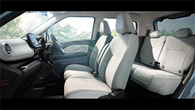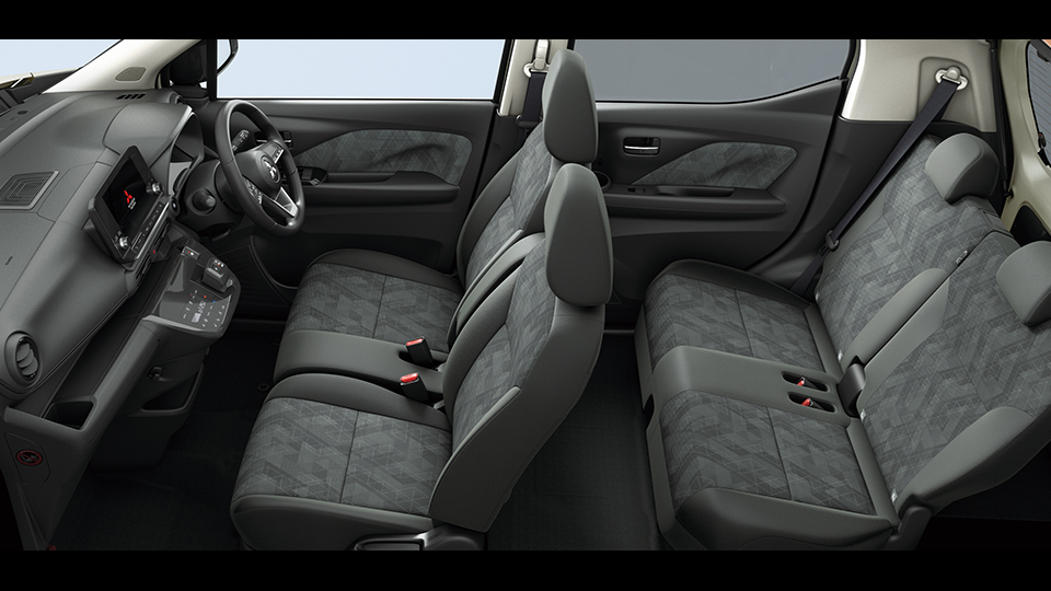 Photo: P、プレミアムインテリアパッケージ[内装色(ライトグレー)、シート生地(合成皮革&ファブリック)]●撮影のために点灯 ●インテリア写真はカットボディによる撮影 ●画面はハメコミ合成 ●プレミアムインテリアパッケージはメーカーオプション