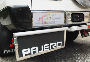 面白いと言えば、パジェロのリアバンパーの左右に貼られている自作ステッカーだ。