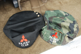 リアシートに置かれていたふたつのハンチング帽には"PAJERO CLUB"という文字と赤いスリーダイヤモンドが刺繍してある。既製品のハンチング帽を手芸店に持ち込み、刺繍してもらった。