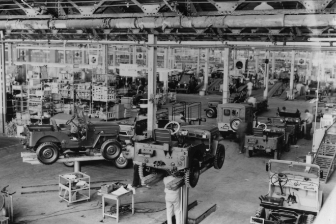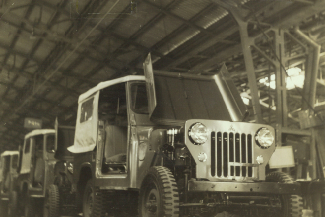 The Mitsubishi Jeep had been manufactured by Shin Mitsubishi Heavy Industries, our predecessor, since 1953. Later, the production was later fully outsourced to Toyo Machinery Co., Ltd. (then located in Kita Ward, Nagoya) as part of the streamlining project at Nagoya Motor Vehicle Works.