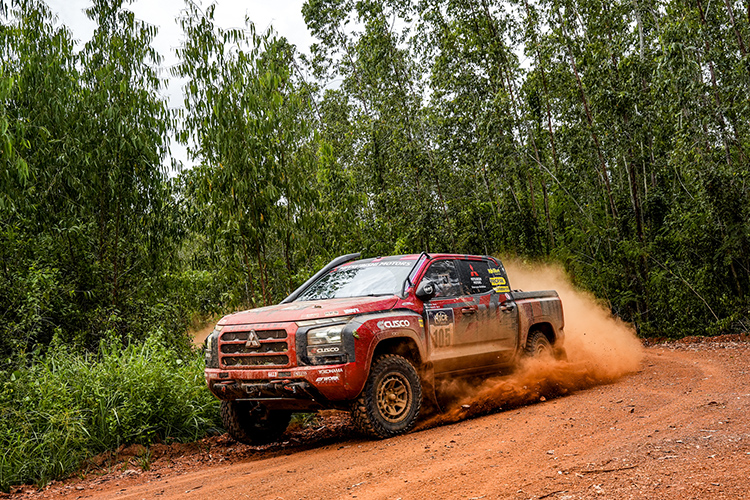 Four-wheel drive technologies honed in the Dakar Rally have now been passed down to a new setting— AXCR. The inheritor taking on this new challenge is the Triton. AXCR is a cross country rally taking place in Southeast Asia and centered in Thailand, covering various types of terrain including swaths of jungle, red soil surfaces, and tough, narrow roads through forests. Masuoka commented on the grueling nature of the event, “AXCR goes through the jungle. It has slippery red soil surfaces and narrow passages between trees. It even has some areas that are impossible to traverse without folding back your side view mirrors.”