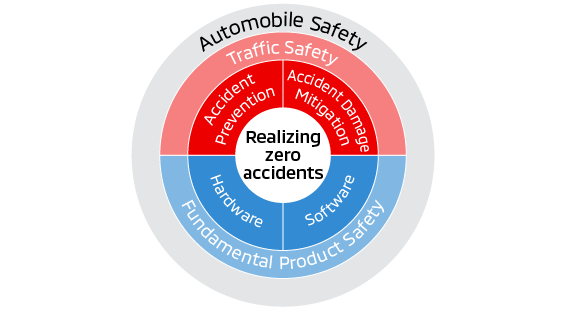 We are working to develop and install various active safety technologies to help to eliminate traffic accidents preemptively.