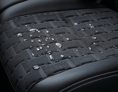 - アウトドアでの使用や小さなお子様がいるご家庭での使用を想定し、汚れがつきにくく、通気性の良い撥水シート生地を採用。また座面や背もたれ中央部に立体的なエンボス加工を施すことで、蒸れにくく座り心地のよい機能的なシートとしました。