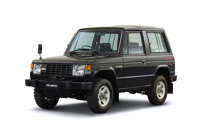 乗用車感覚で使いこなせる新しい4WDとして発売した、本格オフロード・レクリエーショナル・ビークル(RV)。卓越したオフロード性能と乗用車並みの扱いやすさの両立という『パジェロ』の特長を確立した。ショートボディのメタルトップとキャンバストップを展開し、1983年にはロングボディを追加投入した。ディーゼルとガソリンエンジンを設定し、展示車は2.4Lディーゼルエンジンを搭載。 |