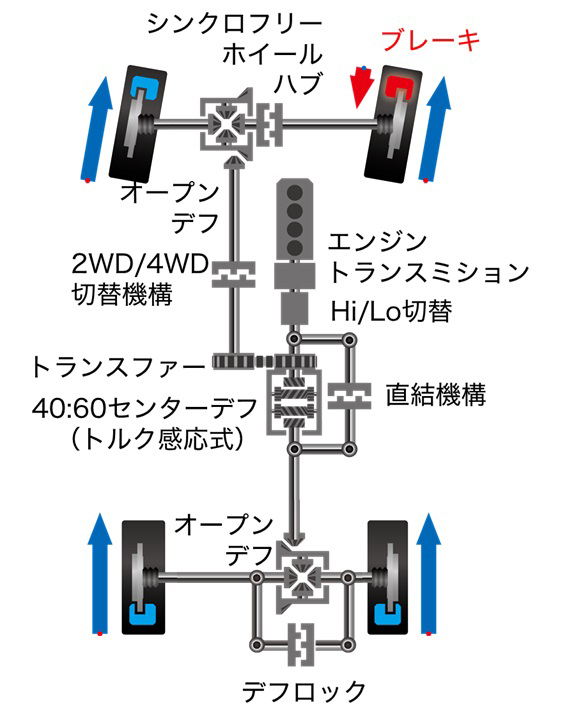 VCUを排し、トルク感応式LSDとしたフルタイム4WDでも微細に制御されているため、悪路走破性が高く、「まるでロックされているかのような走破力があって、どんな道でもぐいぐい進めるんです」と増岡は胸を張ります。