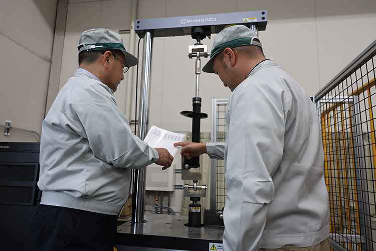 「我々の部署では、ショックアブソーバーの減衰特性を測る機械を導入しています。そこで出したいろいろな測定線図を見ながら調整するというやり方になります。ですが、これはあくまでも、手段として使っているものです。先ほど言った乗り味の感覚こそ、我々が部品メーカーの方に伝えなければいけない部分ですが、これがなかなか伝わりづらい。運転していてガツンとショックが来たら、『硬い』、『強い』などと表現できると思いますが、別の人だったら『痛い』と言うかもしれません。いろいろな表現があるので、部品メーカーの方に、ただ『硬い』と言っても、それだけでは伝わりません」
