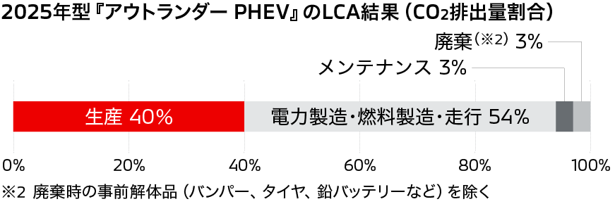 当社は、製品のライフサイクル全体での環境負荷を把握するために、LCAを実施しています。部品や素材に関わる資源の採掘、素材製造、部品製造、車両組立、燃料製造、走行、廃車処理、そのほかの工程を対象に、主にCO2排出量を集計し評価しています。