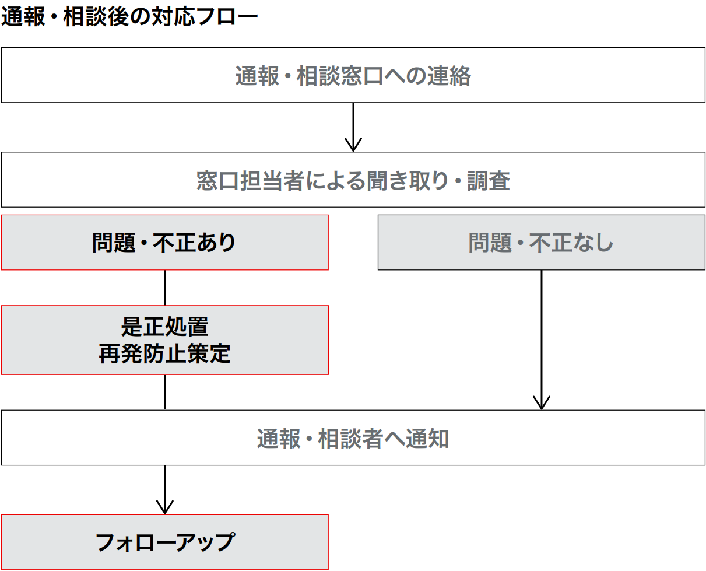 2024年度に受け付けた全136件の通報・相談のうち、調査の結果、法令違反やハラスメントなどコンプライアンス上の問題があった4件については、速やかに是正処置を取るよう関係部署に指示し、確実に実施されたこと、および有効性を確認しています。