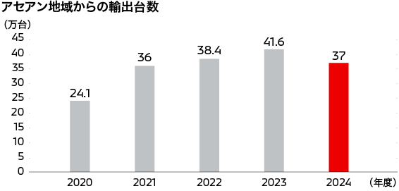 中期経営計画「Challenge 2025」では、アセアン地域を事業の中核地域と位置付けており、2023年度から、インドネシア、ベトナム、フィリピンと内燃機関車である新型SUV『エクスフォース』を順次市場投入しました。また、新型ピックアップ『トライトン』をタイなど各国に投入しました。
